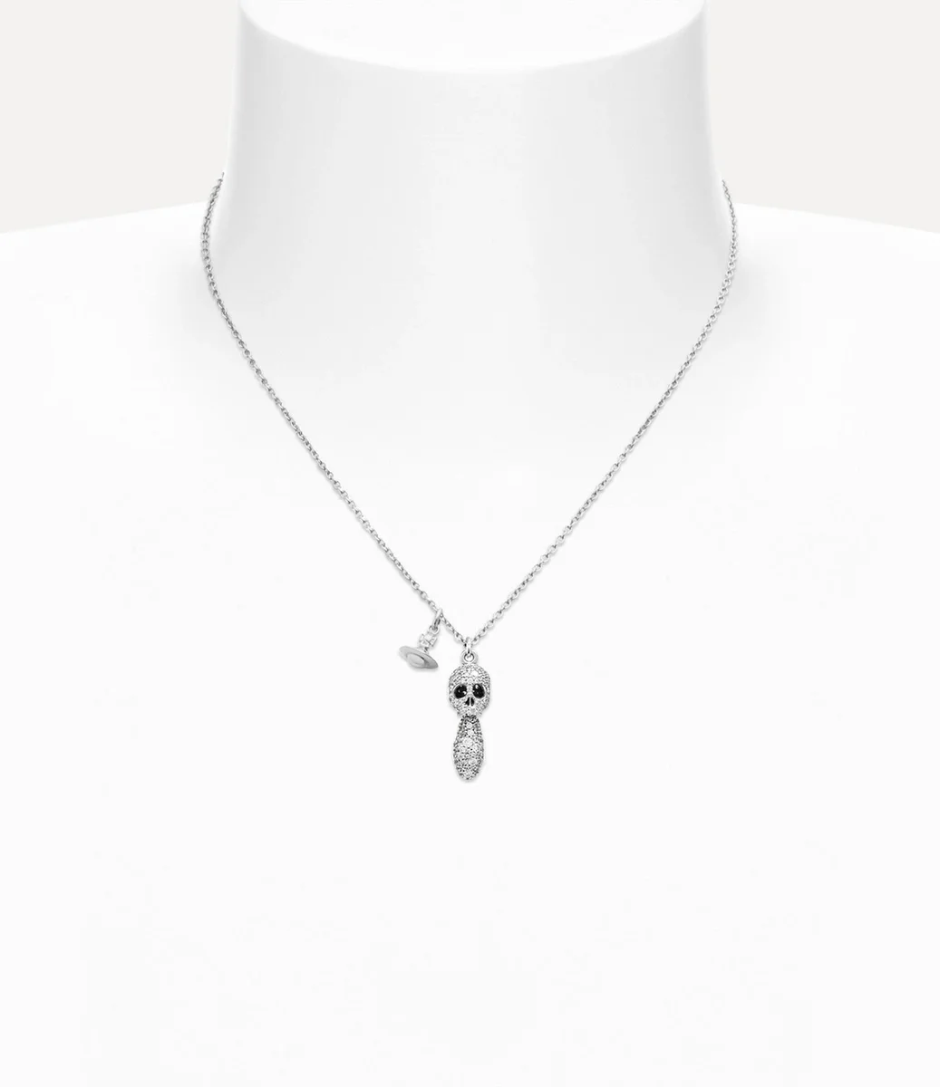 Vivienne Westwood Circe Orb Pendant necklace features a central skull motif, adorned with rows of shimmering gemstones.