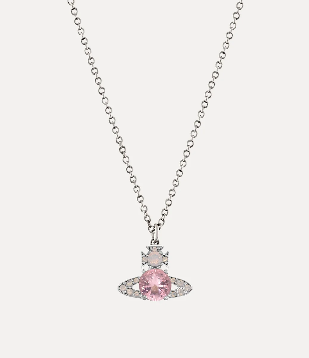 Vivienne Westwood Ismene Pendant necklace in silver-toned plating features the classic two-dimensional orb shape encrusted with pink crystals.