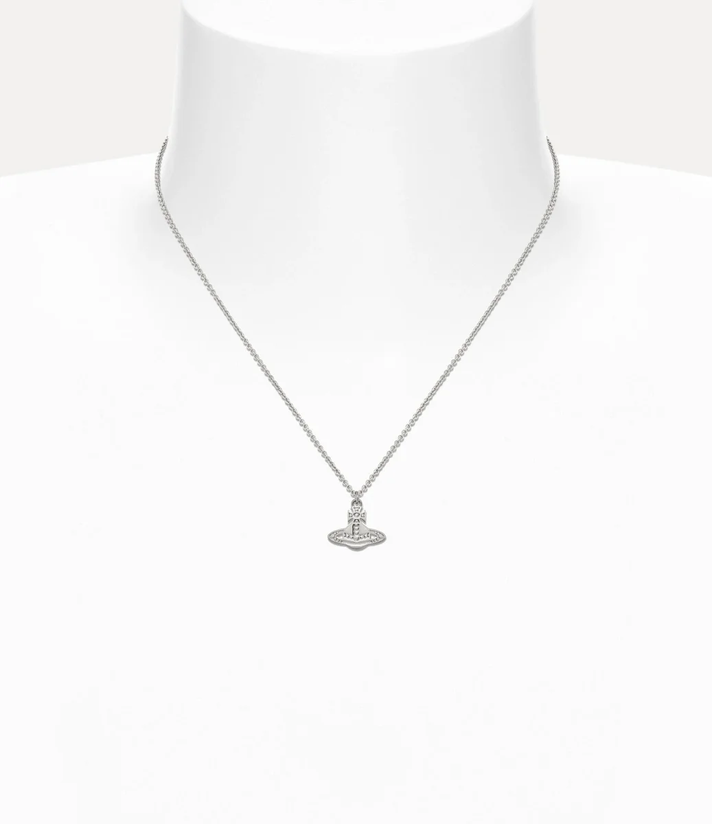 Our Marinetta Pendant necklace is crafted from silver-tone metal and centred around the house’s classic orb motif. The pendant features a gently pressed, bead-like texture that evokes a handcrafted feel, while engraved detailing highlights the contours of the cross top and Saturn ring.