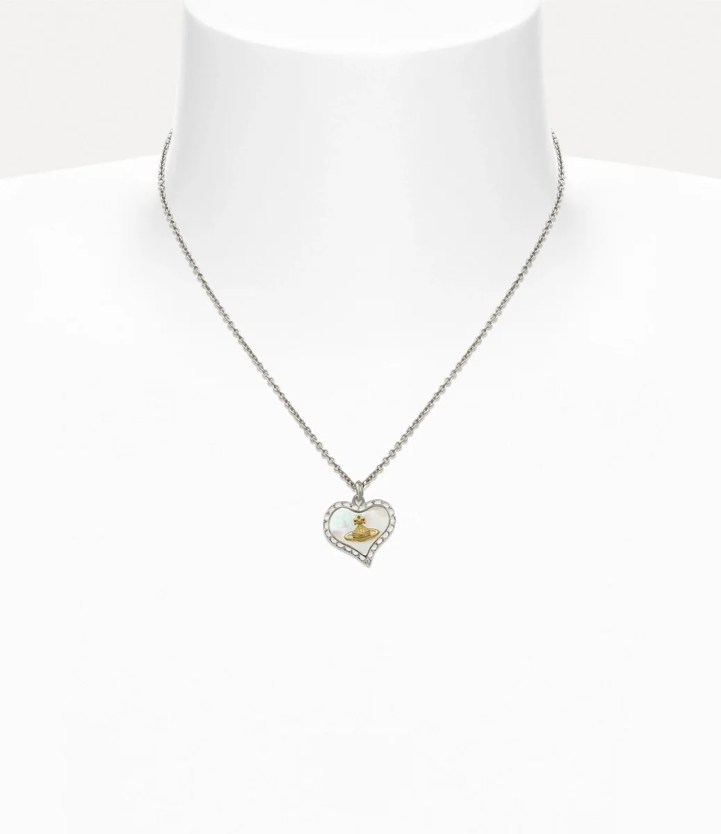 Our Petra Pendant necklace revives the house’s signature asymmetric heart motif, synonymous with Vivienne’s affection for both humanity and the planet. The motif is outlined with white-coloured crystals and finished with a gold-tone orb motif in the centre of the design.