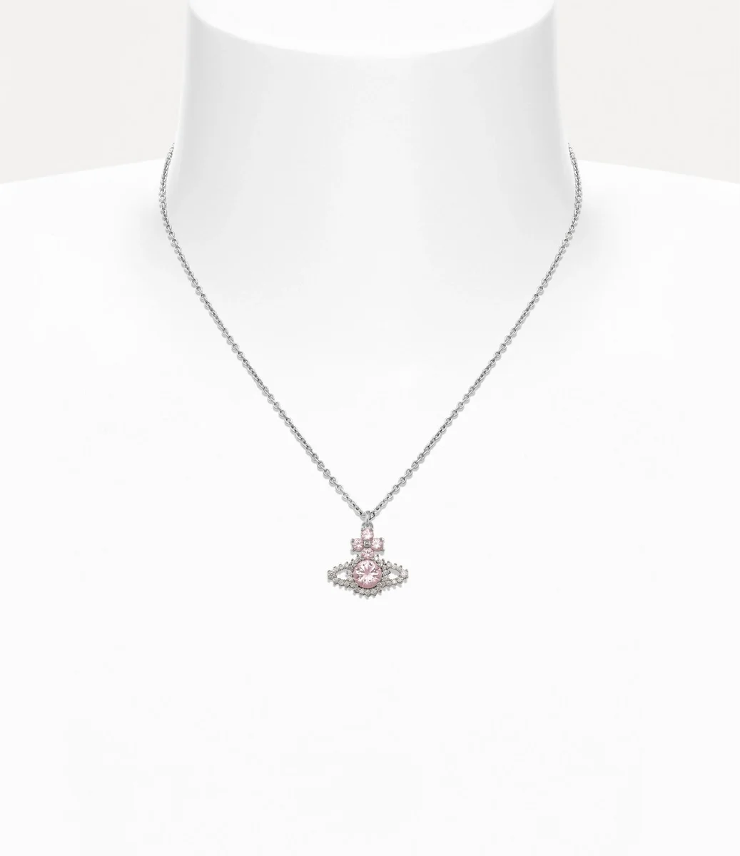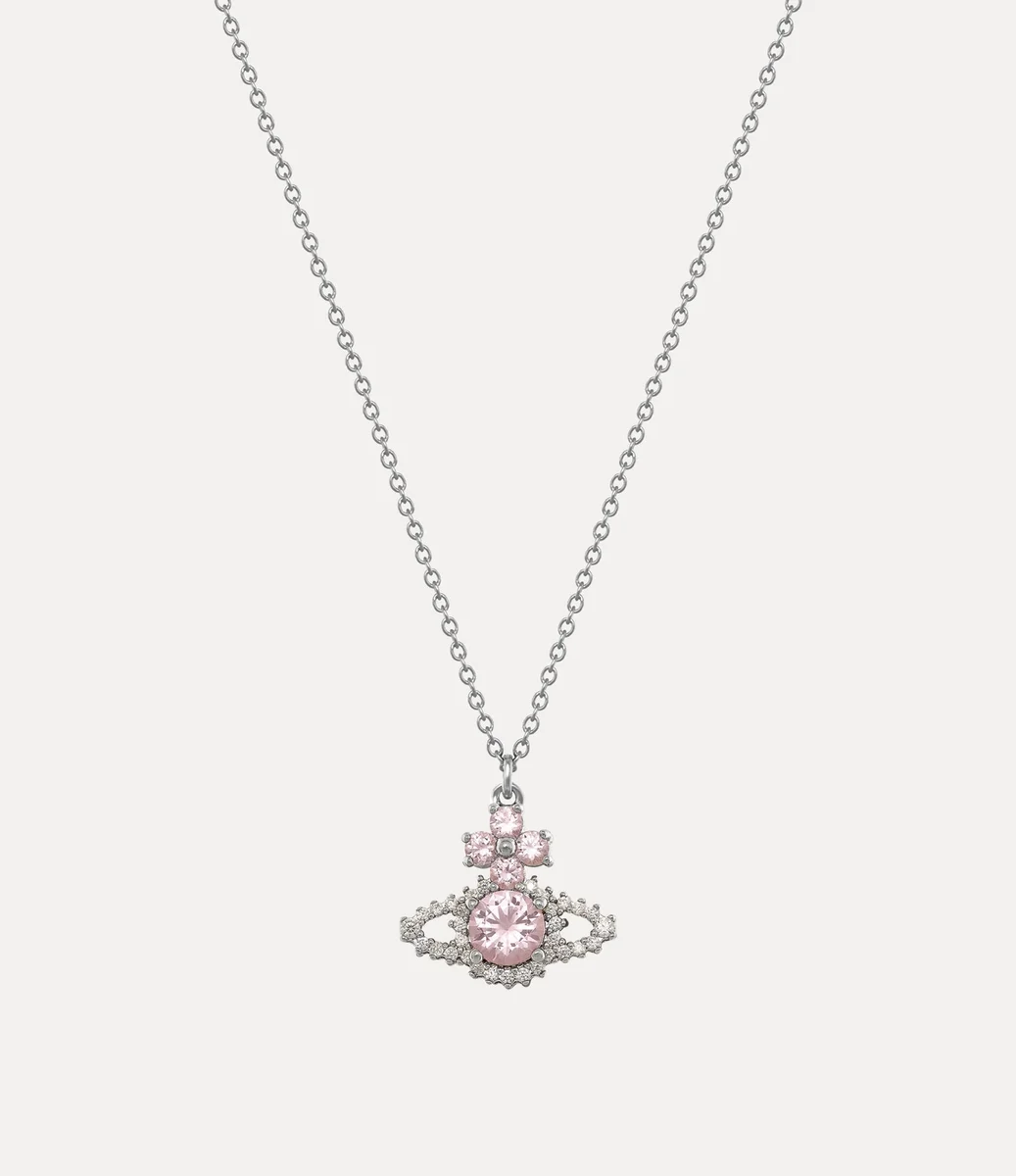 Vivienne Westwood Valentina Orb Pendant necklace features an orb-shaped silhouette at the centre of the design, embellished with white and pink crystal accents.