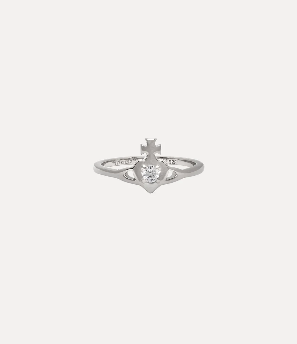 The heart shape remains a classic element of house iconography, recalling Vivienne’s affection for humanity and the planet. Our Noella ring revives the motif, complete with polished, platinum-tone plating and white crystal embellishments.
