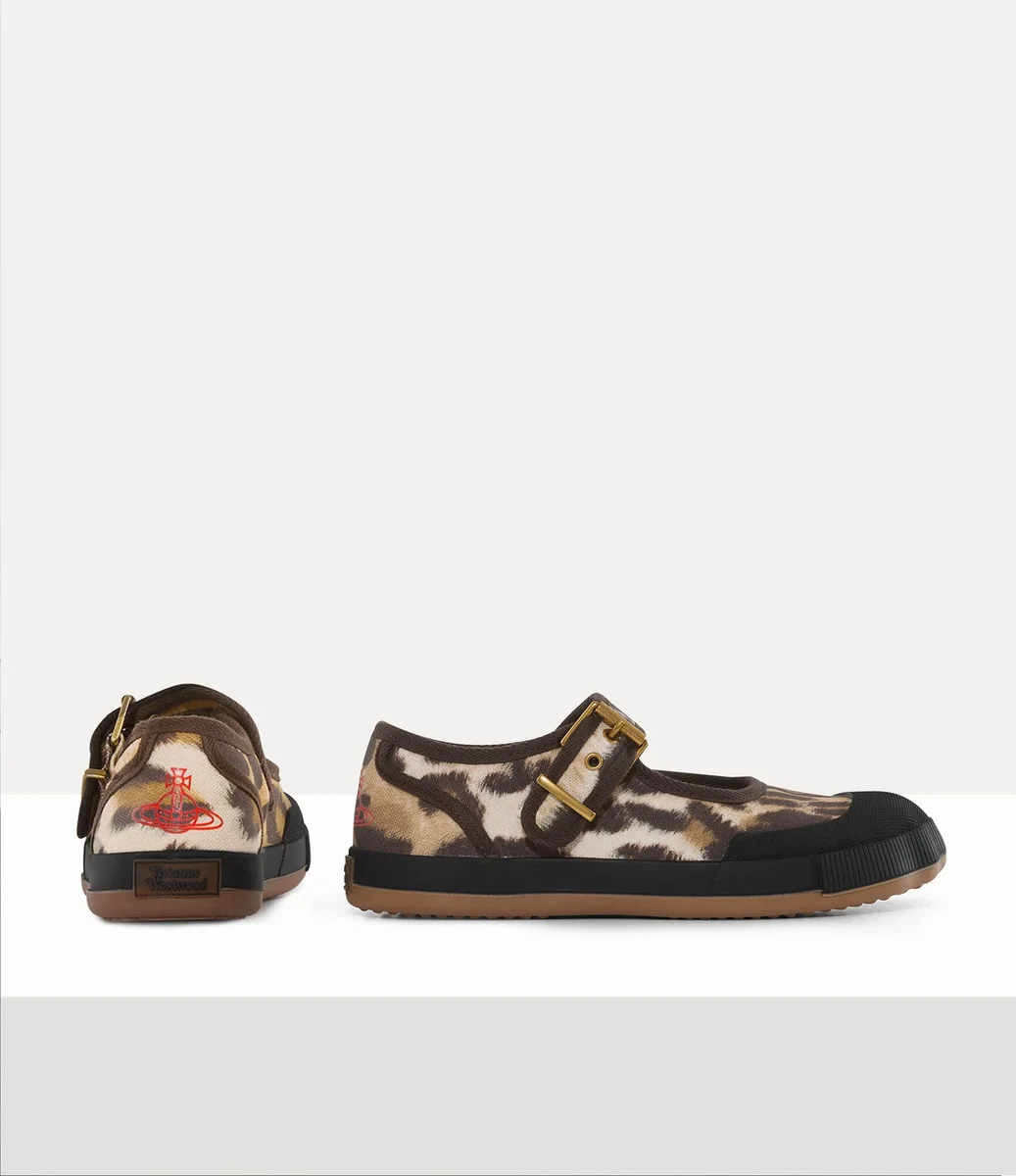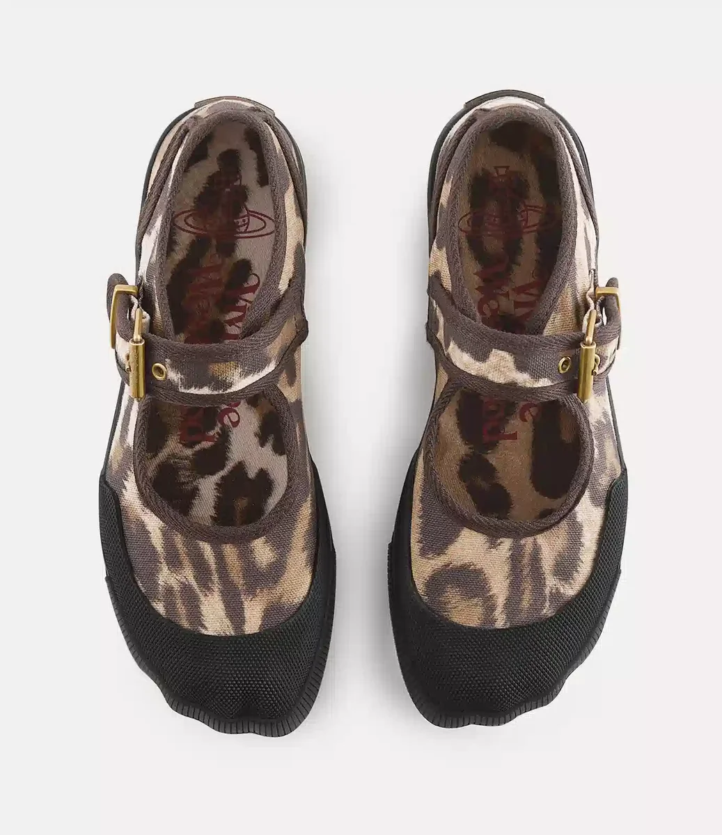 Vivienne Westwood Animal Gym Bar shoes are reimagined this season in an all-over leopard print and finished with the iconic orb at the heel.